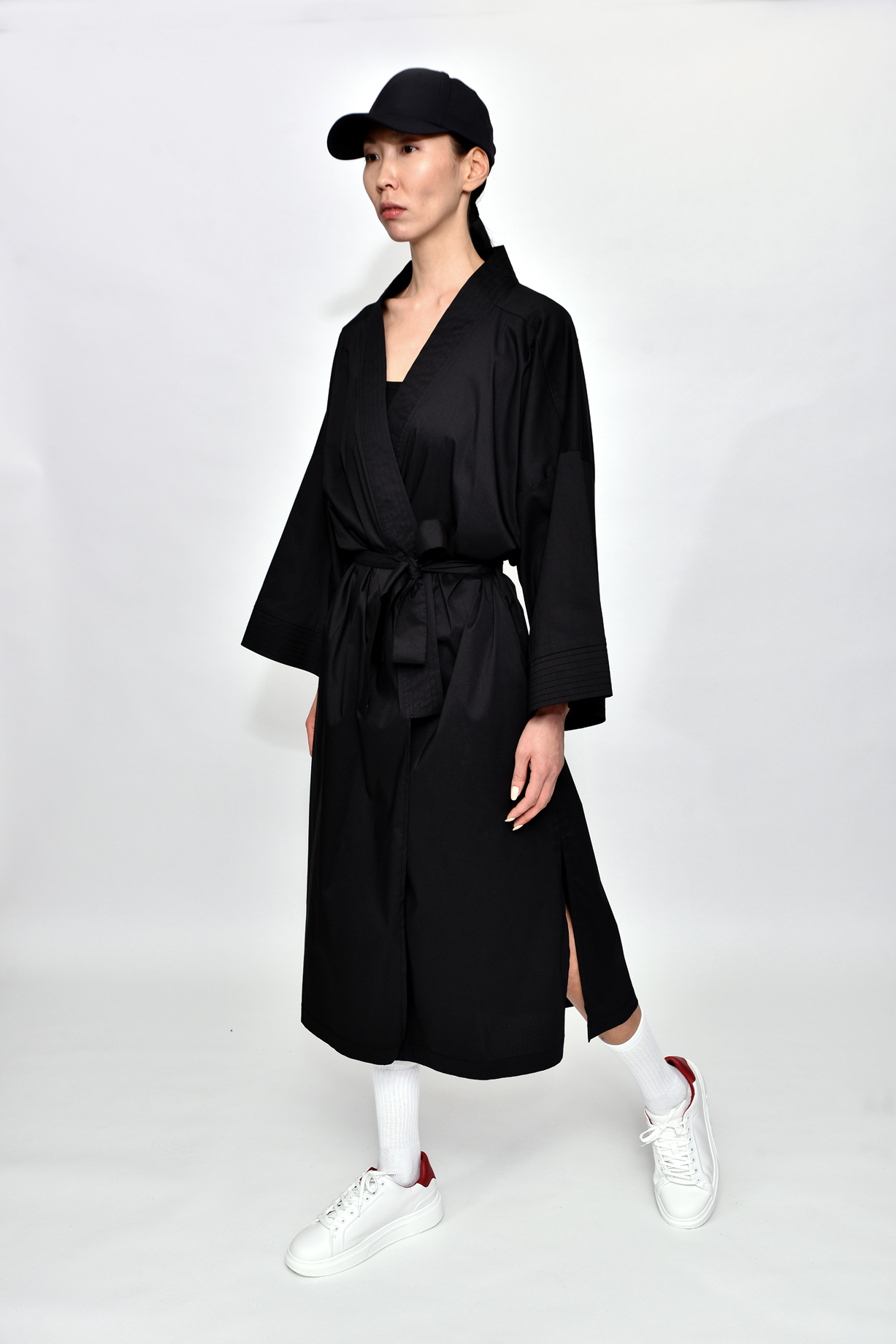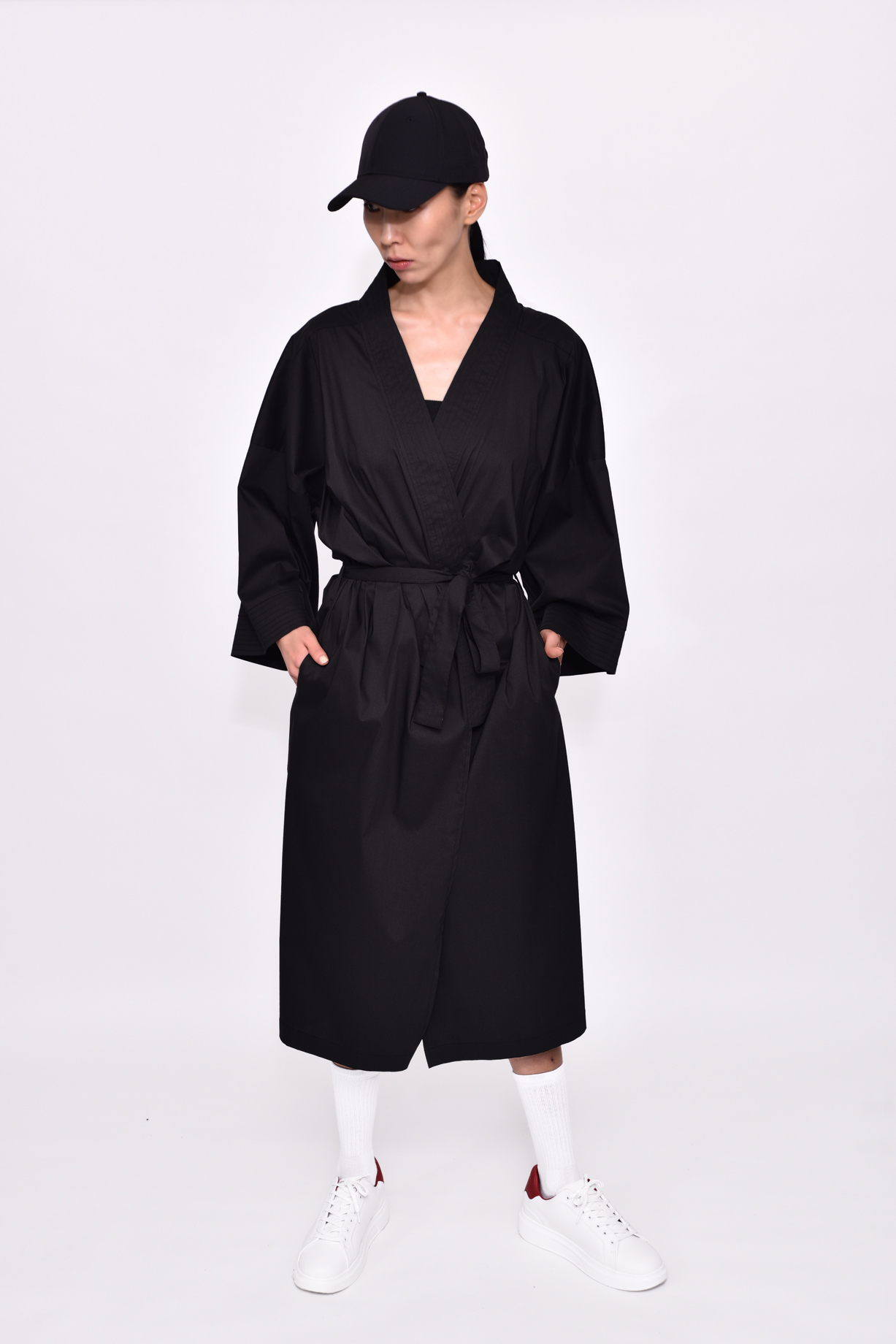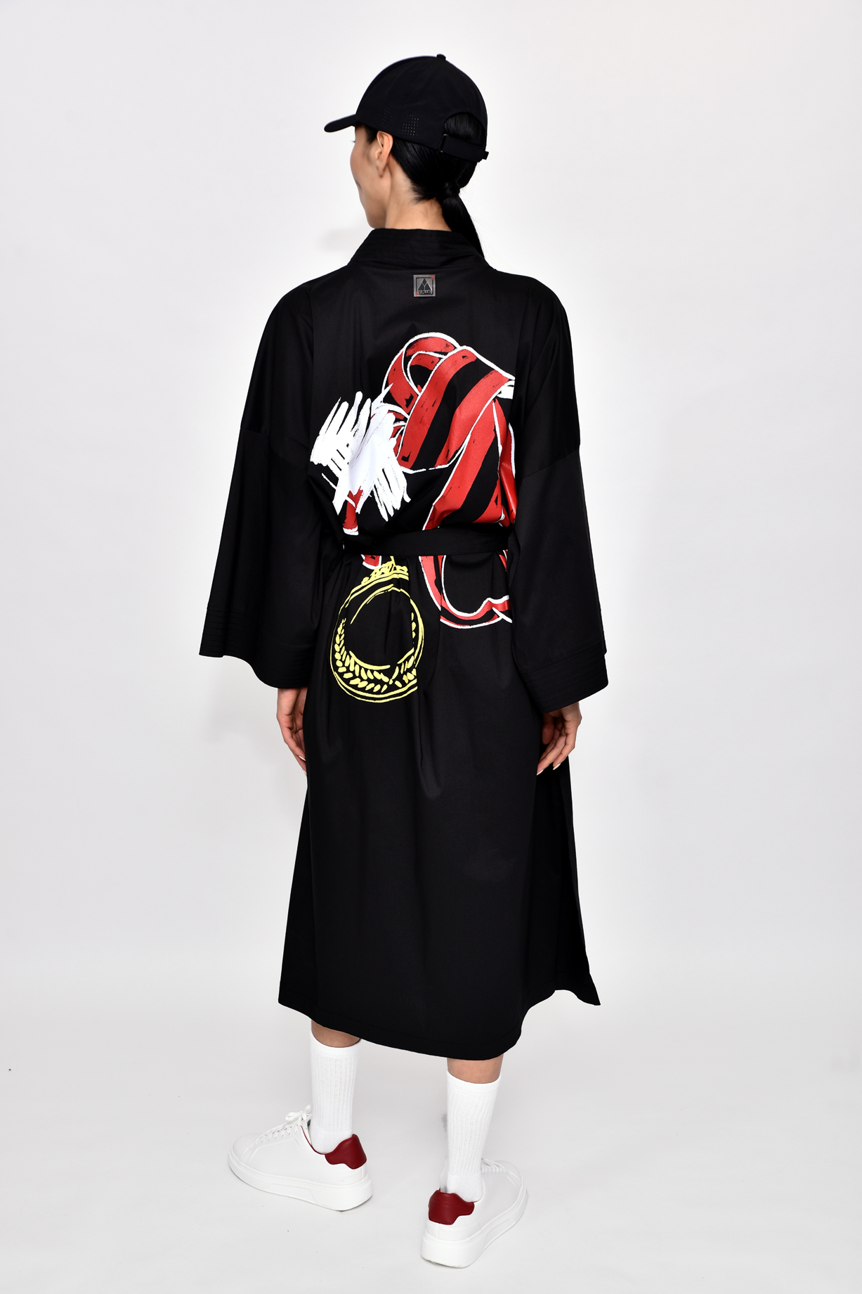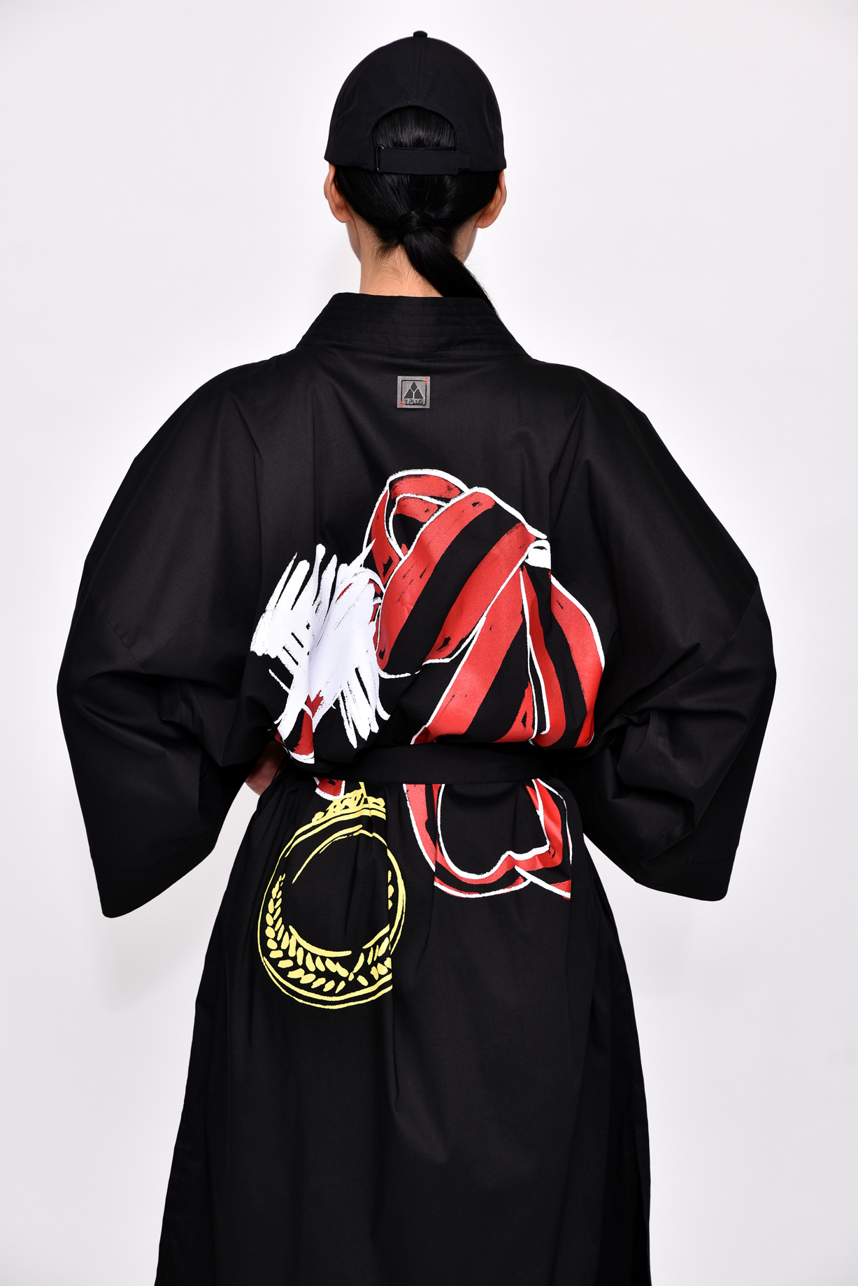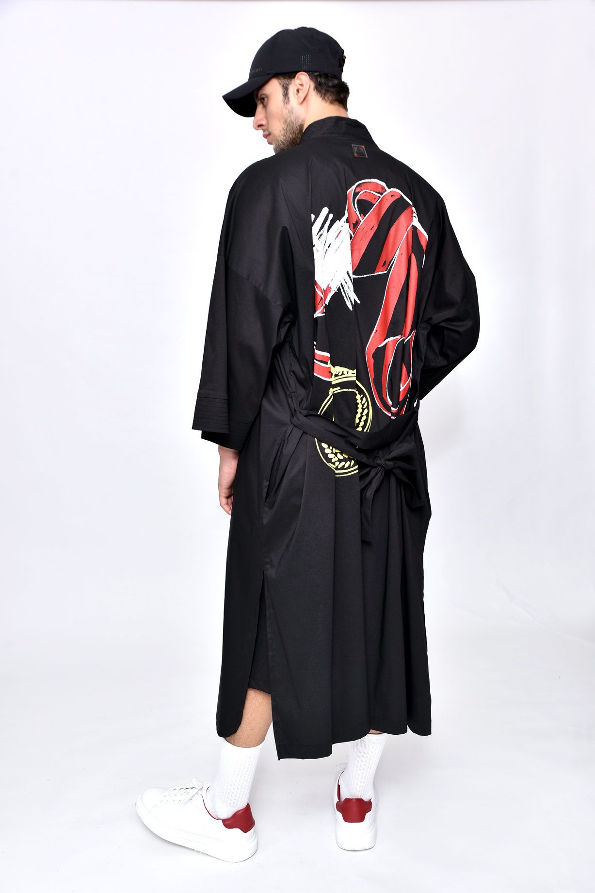 BACK PRINTED LONG BLACK UNISEX KIMONO %100 COTTON POPLIN FABRIC